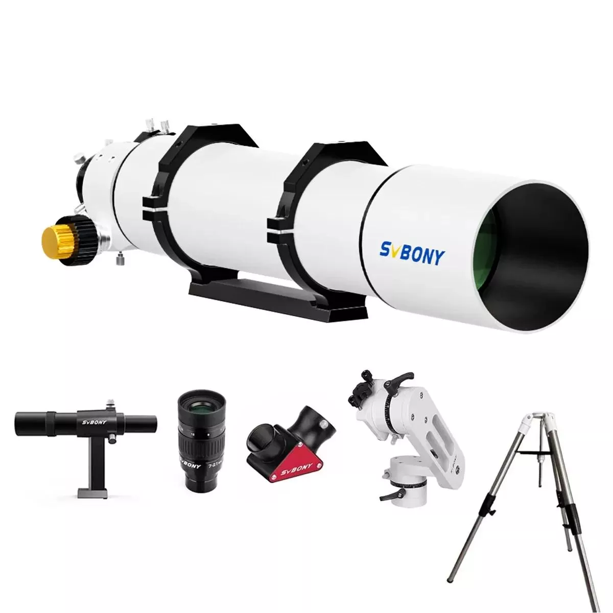 This telescope set comes fully equipped for a seamless viewing experience. You’ll receive a finderscope for quick target acquisition, a zoom eyepiece for variable magnification, a zenith mirror for comfortable viewing angles, an adjustable altazimuth mount for stable tracking, and a sturdy aluminum tripod for reliable support during long observation sessions.