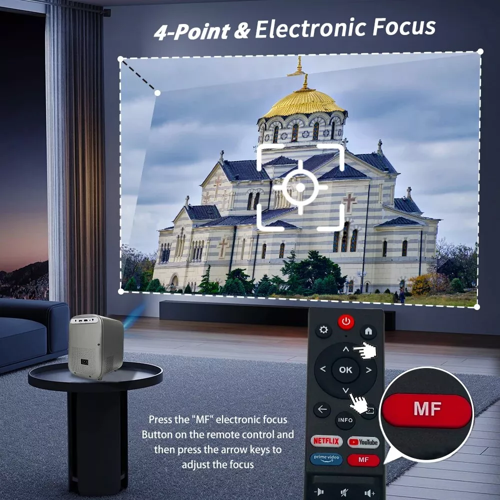- Four-Point Keystone Correction: Adjust the image for a perfectly squared display, even when the projector is placed at an angle.