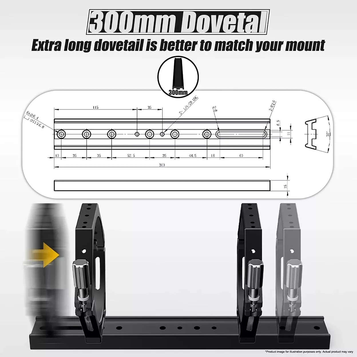 What sets this telescope apart is its combination of portability, power, and precision. The advanced optical design with premium coatings ensures maximum light transmission, enhancing both the brightness and quality of celestial objects. The extended 300mm V-style dovetail and multiple screw holes in the tube rings allow for easy attachment of additional equipment, adapting to various astrophotography needs.