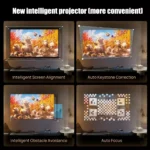 This projector is equipped with cutting-edge features like auto-focus and auto keystone correction, meaning your screen will always be perfectly aligned and in focus without any manual adjustments. It also intelligently avoids obstacles like picture frames or wall edges, ensuring your content is projected without interruptions. With Bluetooth connectivity, you can pair it with speakers, headphones, or other Bluetooth devices, adding flexibility to your setup.