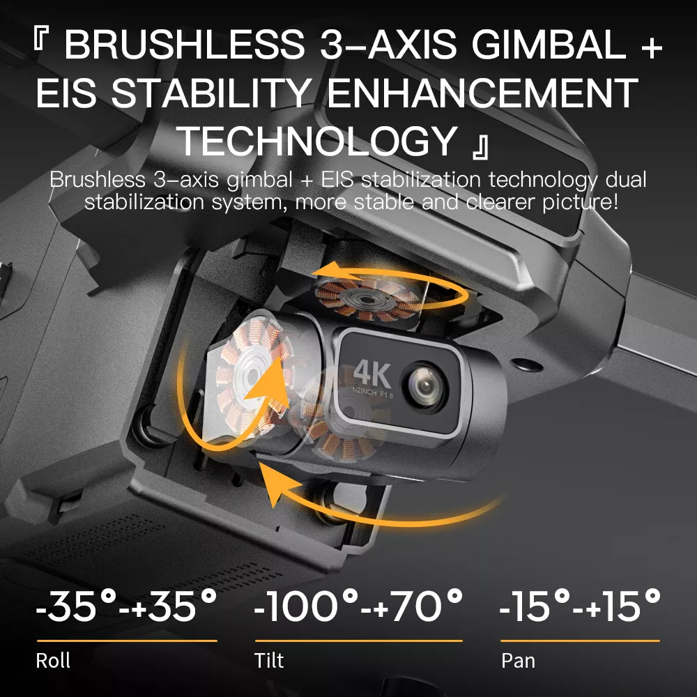 - 3-Axis Gimbal with EIS: Enjoy ultra-smooth shots with electronic image stabilization for stable footage.