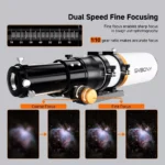 If you’re looking for a powerful yet compact refractor that combines professional-grade optics with a user-friendly design, this telescope is your gateway to deep-sky exploration. With its superior light gathering, fast focal ratio, and image-perfecting features, it stands out as a top choice for both beginner and experienced night sky photographers.