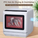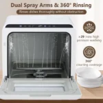 Ideal for use in tight spaces, this portable dishwasher is perfect for families, frequent travelers, and anyone looking to simplify their cleaning routine. It’s the perfect combination of practicality, efficiency, and style.