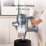 The built-in LED illumination helps you spot dirt in dark corners or under furniture, making it ideal for those hard-to-see spots. Whether you’re cleaning carpets, hardwood floors, or upholstery, the vacuum’s versatile design ensures a thorough clean every time. Plus, its removable Li-ion battery makes it easy to maintain and swap out for longer cleaning sessions.
