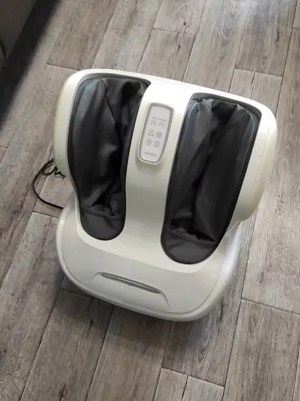 A friend recommended this massager to me due to my chronic venous insufficiency, which causes swelling in my calves and ankles. Initially, I bruised my arch by misplacing the massage balls, but positioning them under my heel and the ball of my foot the next time proved effective. The adjustable intensity levels are a bonus, and using it twice daily has significantly improved the condition of my legs. It’s a bit cumbersome, but worth keeping out for regular use.