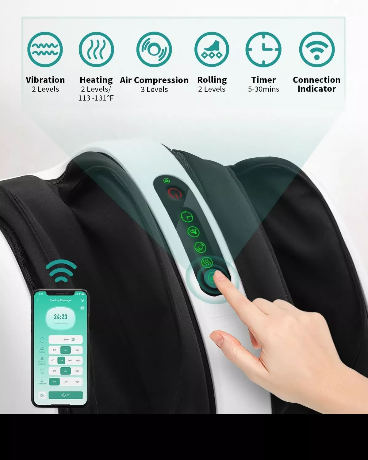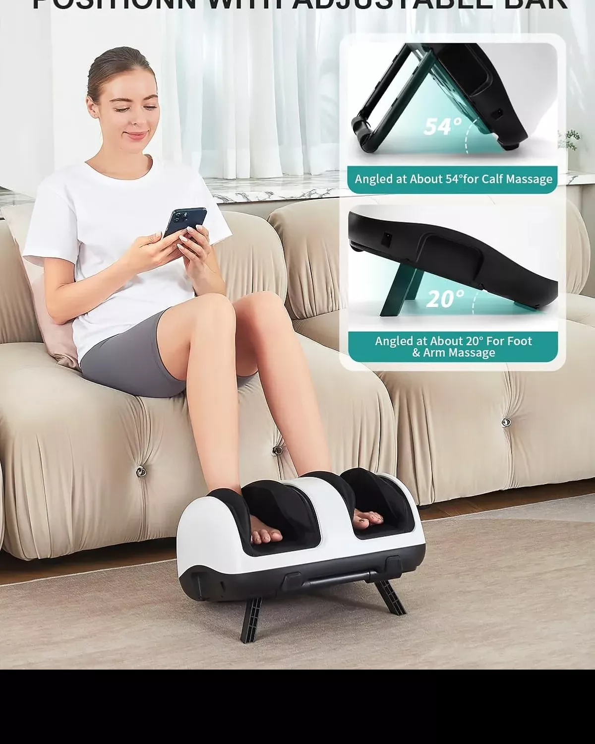 - Adjustable Massage Angle: Find the perfect position with an easy-to-use support bar—ideal for feet, calves, or arms.