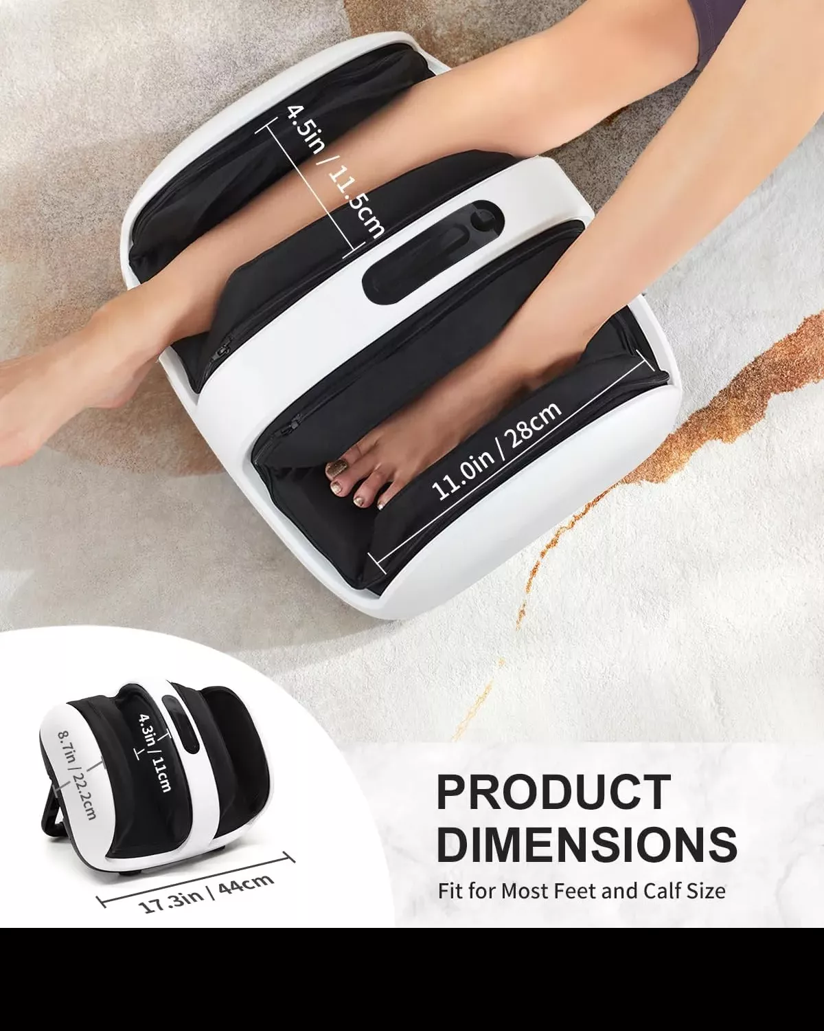 - Fits Most Foot & Calf Sizes: Spacious massage chambers designed for a wide range of users (up to 4.5 inches wide).