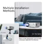 This projector excels in diverse environments, making it perfect for home entertainment, office presentations, outdoor cinemas, and educational purposes. Its portable design coupled with high connectivity makes it ideal for impromptu movie nights, professional business presentations outdoors, or interactive learning sessions in any room size.