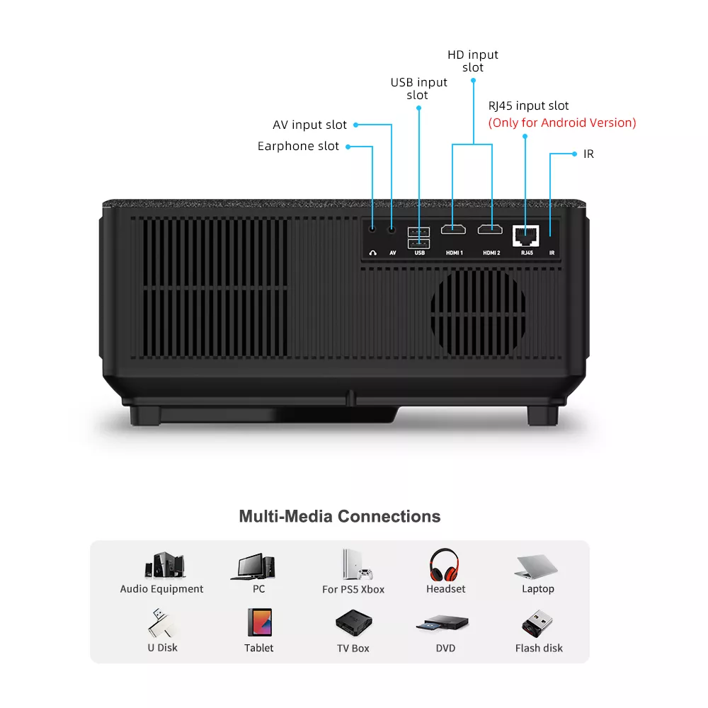 - Versatile Connectivity: Connects easily to smartphones, laptops, gaming consoles, and other devices via WiFi, Bluetooth, HDMI, USB, and more.