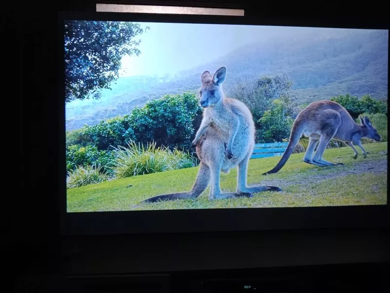 Outputs 2K and 4K through HDMI, worse picture over Wi-Fi. Didn’t expect such a sharp and contrasty picture for the price. Quite satisfied, watching on a roll-down gray blackout, 6.5 feet screen width, and it’s quite alright!