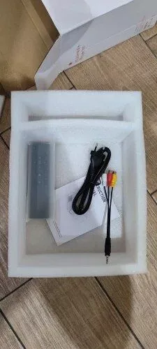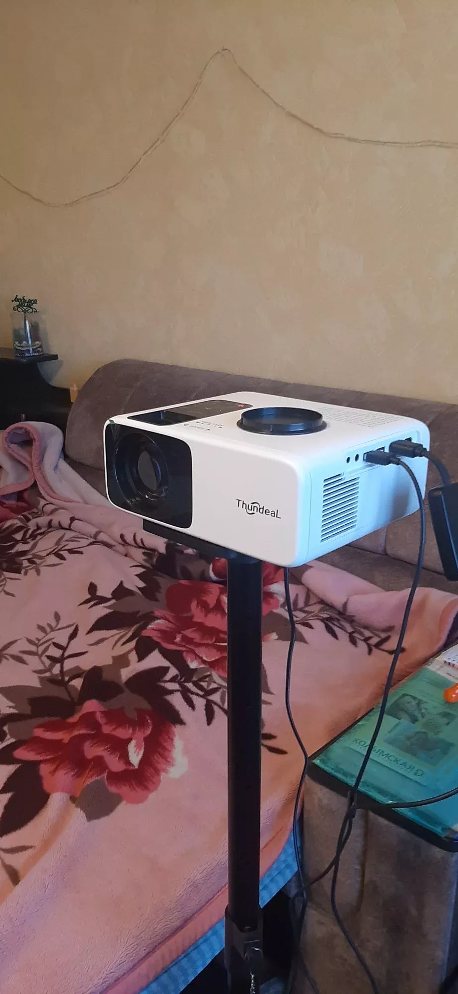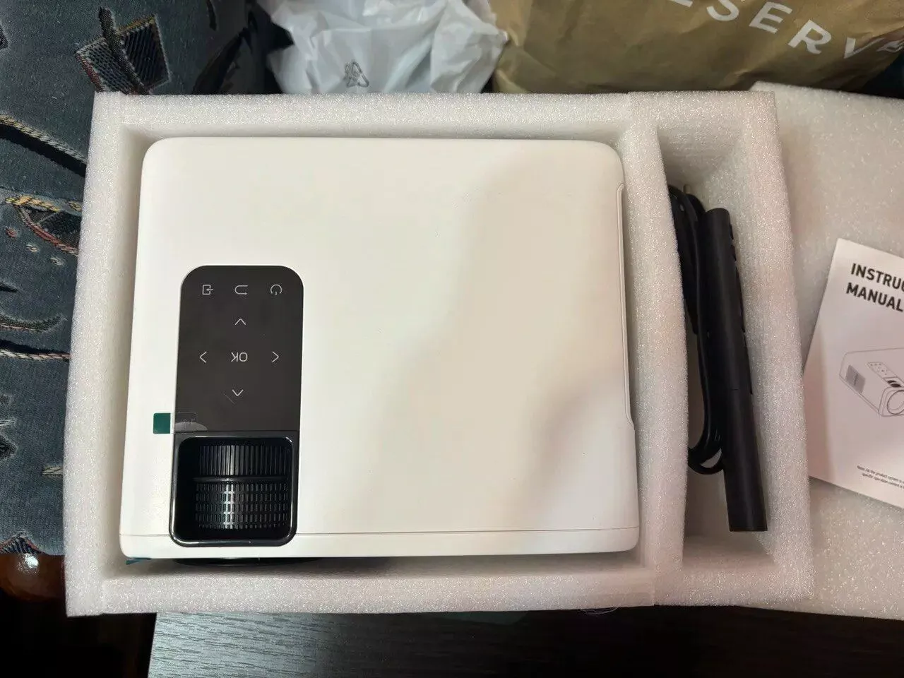 Good projector. Arrived in soft packaging in integrity. Connected to the TV set-top box everything works perfectly. It remains to choose a place so that the projector is at right angles will then be generally high.