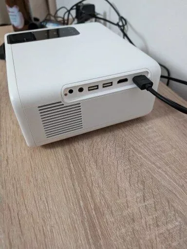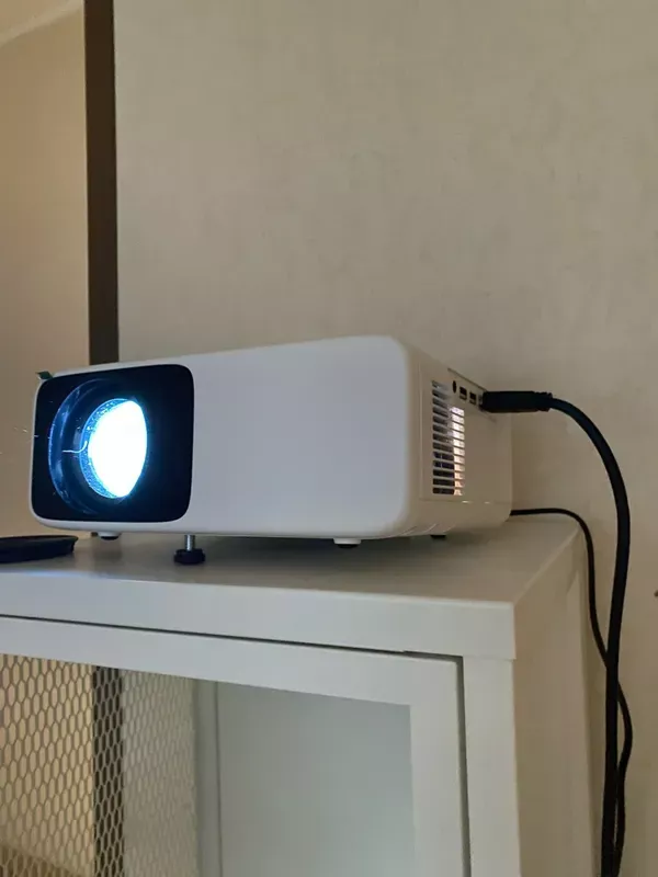 The projector definitely has a bright picture, clear image, and vertical angle adjustment. All functions work without failures. Supports Miracast (available on computers with Windows 10/11), works via HDMI cable too.