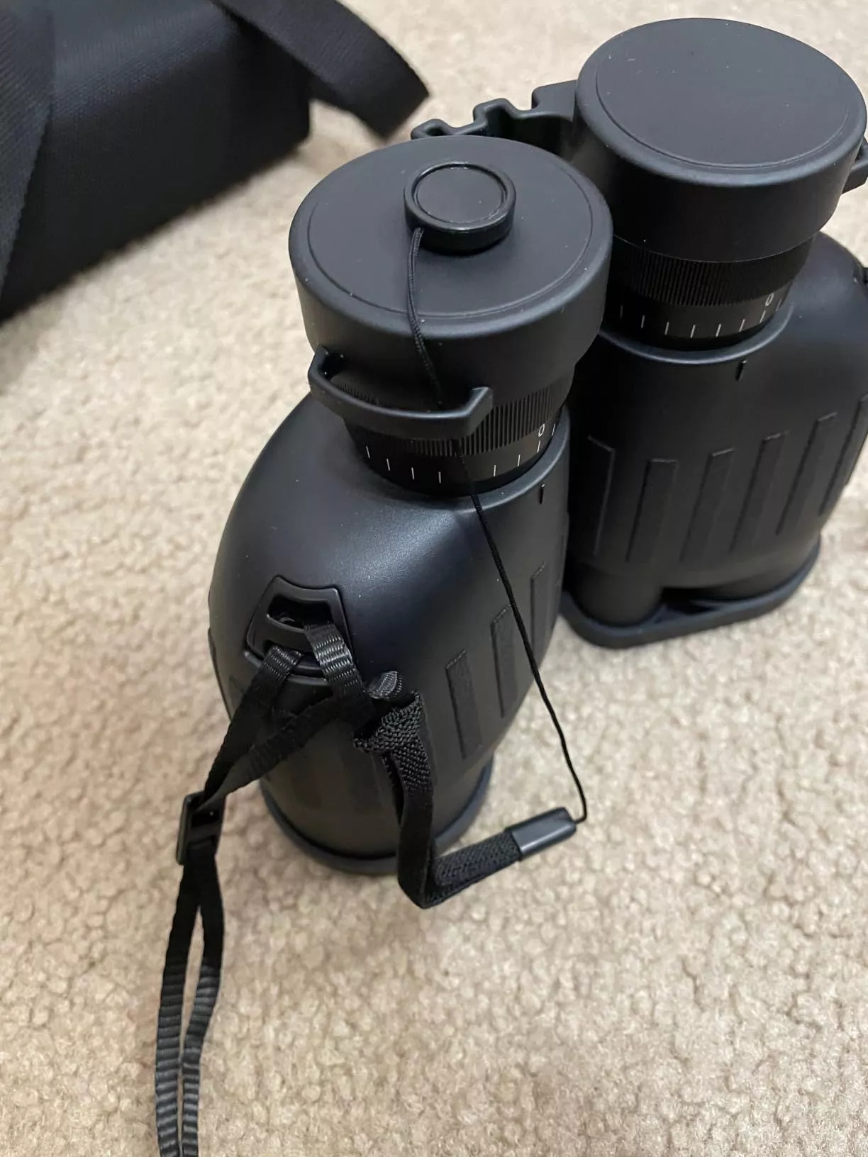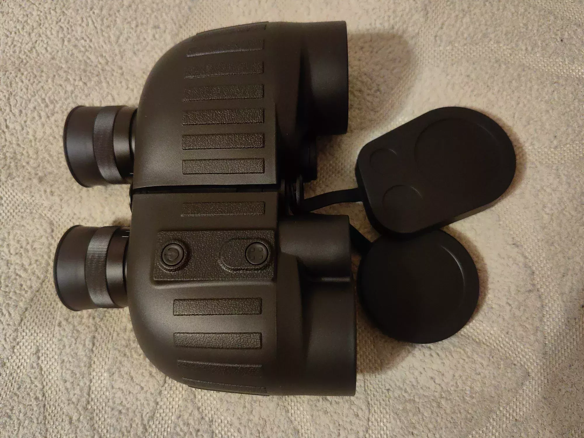These Marine Binoculars are the real deal! They are rugged, sturdy, well made and designed and provide crisp, clear, focused view of distant objects and vistas. Love the rangefinder feature. The in-view display is clear and not intrusive. Thoughtfully designed where the lens cap for the back end are attached to the Binocular’s body. Not so with the eyepiece cover, which I don’t understand. Rather than invariably losing them, I purchased and installed an elastic lens cap tether, normally used for camera lens caps.They are a touch heavy so know that carrying them around on a hike will be adding to your load, but I believe they are worth the effort.