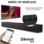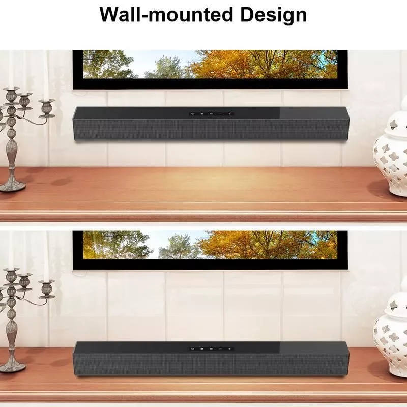 Our soundbar stands out with its advanced Bluetooth 5.0 technology, ensuring a stable, high-quality wireless connection. The sleek design complements any home décor, while its compact size makes it a perfect fit for any room. With no intelligent personal assistant or unnecessary frills, it focuses on delivering the best sound experience without complications.