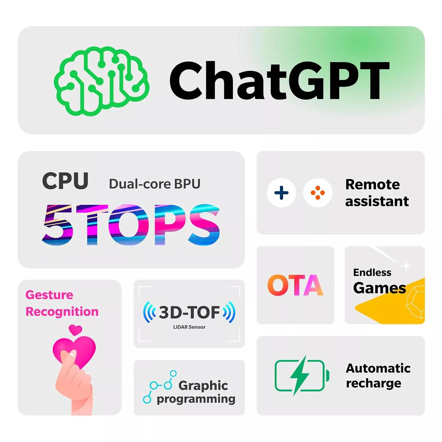 - Interactive Features: Includes a 3D ToF sensor, touch sensor, accelerometers, gyroscopes, and more for lifelike responses.