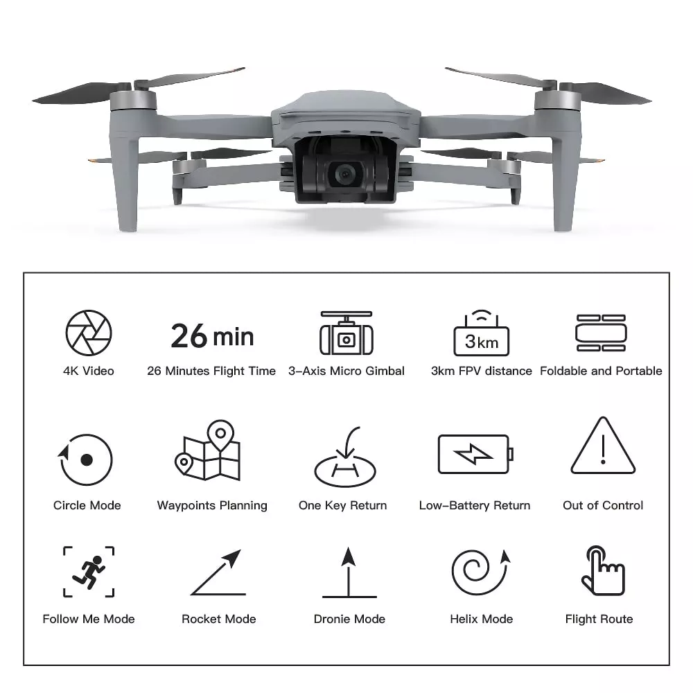 - 26-Minute Flight Time: Enjoy extended aerial sessions with impressive endurance.