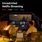 This smart home theater projector has made our family gatherings so much more fun! We can watch movies or stream shows directly from Netflix through the integrated Google TV – all in stunning 4K quality.