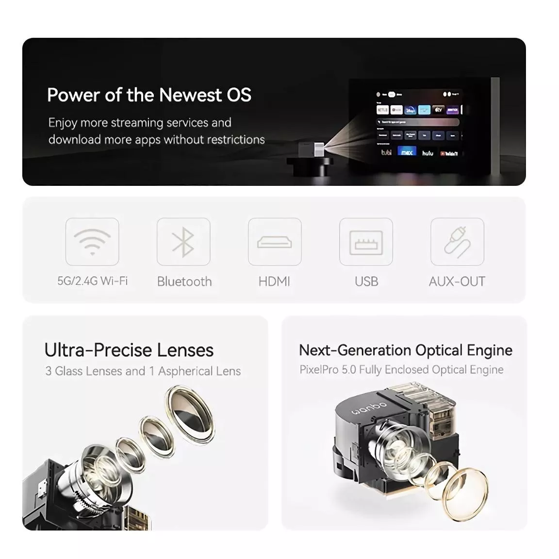 Imagine having a mini theater right within the comfort of your own living room – well now that’s possible! Thanks to this state-of-the-art gadget that delivers exceptional video quality comparable to professional cinemas. Its 4K resolution provides vibrant colors and crisp images which make viewing content more enjoyable than ever before. But what sets it apart from other projectors on the market? It’s definitely its smart auto-focus function which automatically adjusts for optimal clarity so you don’t have to lift a finger! Plus, it comes equipped with Google’s most recent TV platform providing unlimited access to countless movies and series across various genres – talk about having non-stop entertainment!