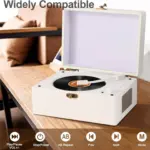 This player is ideal for slow mornings, cozy evenings, or anytime you want to enjoy your favorite music without a complicated setup. It’s perfect for music lovers who appreciate physical media, but also want the option to stream or play digital files. Use it in your living room, bedroom, office, or take it on the go for retro vibes anywhere.