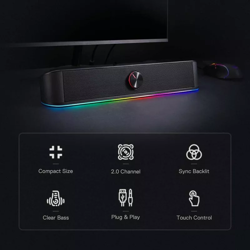 Perfect for gamers, music lovers, and remote workers, this soundbar is ready whenever you are. The sleek design blends into any workspace or gaming station, while the audio-light sync turns everyday listening into a visual spectacle. It’s especially great for creating mood lighting while streaming, relaxing, or jamming out.