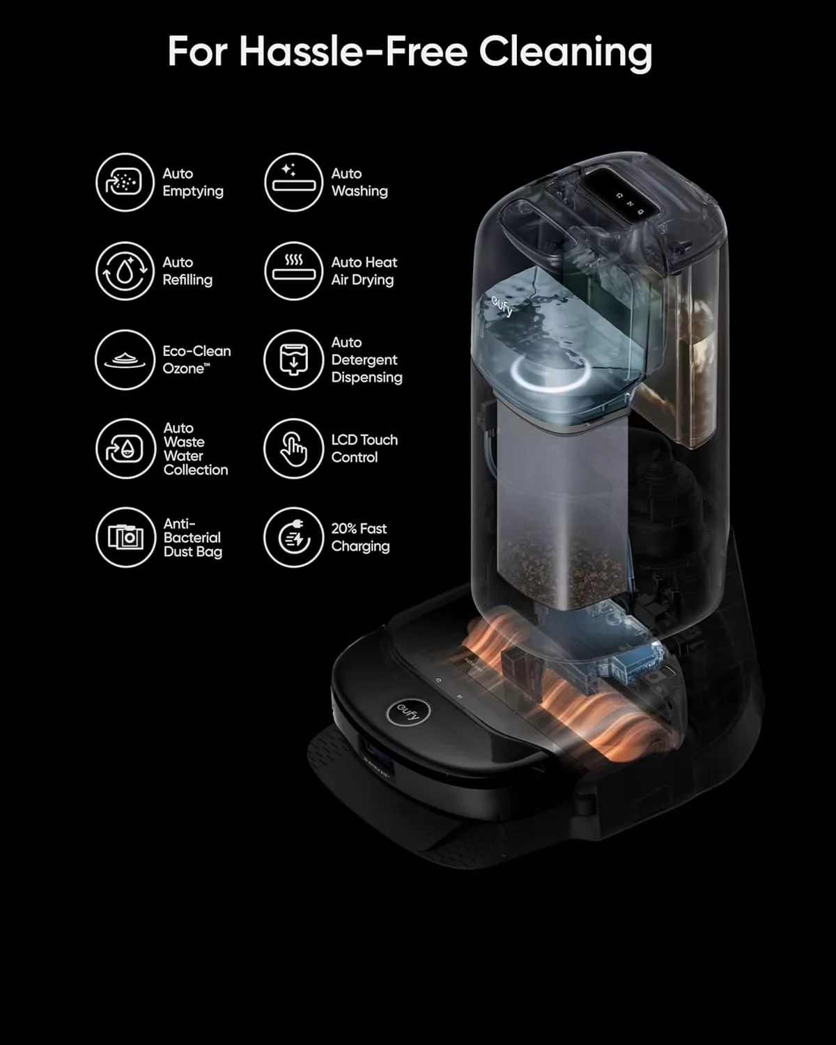 - 10-in-1 UniClean Station: Includes auto emptying, mop washing, heated drying, refilling, and more.