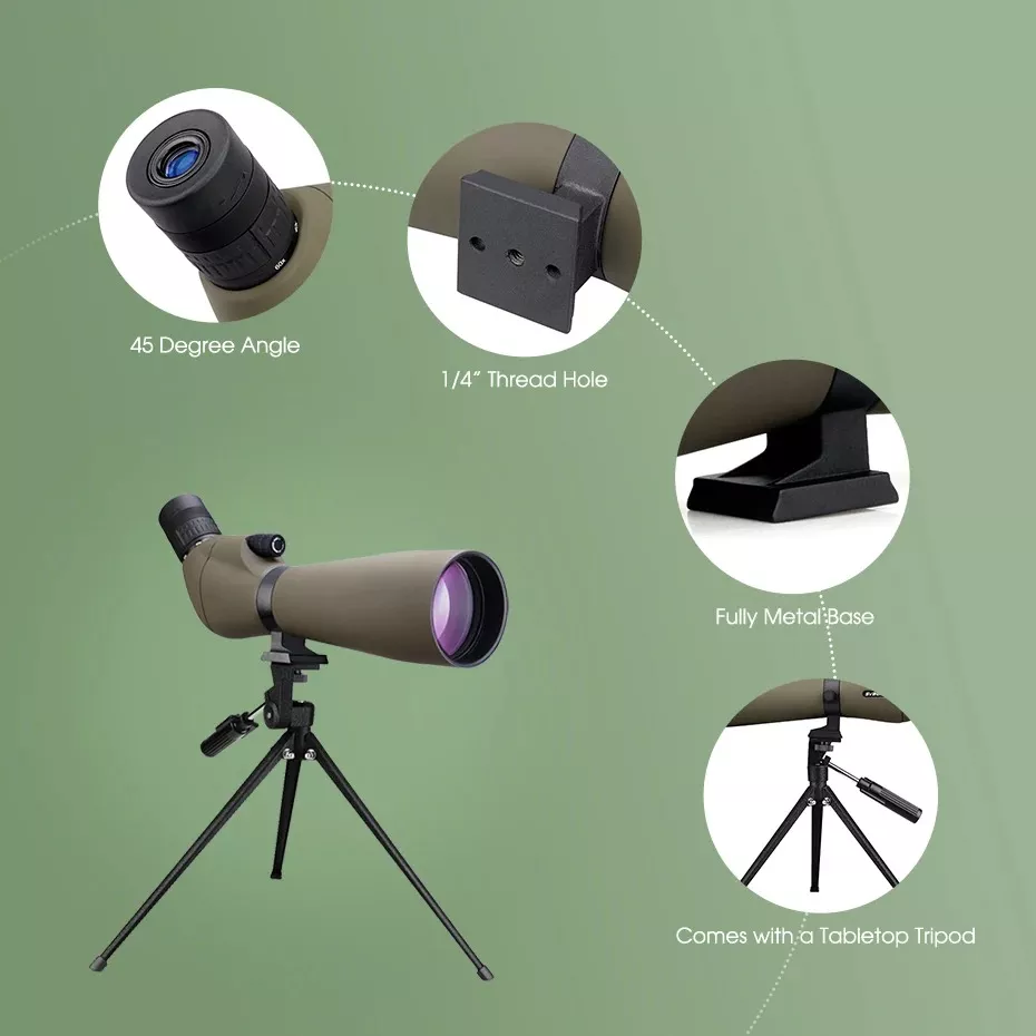 - Durable and Portable: The full metal base and included tripod ensure stability, while the soft carrying bag makes it easy to take your spotting scope on the go.