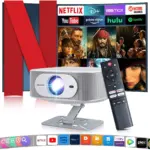 This projector stands out from the rest with its smart features, high resolution, and convenience. Unlike other models, it is officially licensed for streaming Netflix, YouTube, and Prime Video, ensuring access to a massive library of content. The auto keystone correction and electronic focus make setup quick and easy, while the HIFI speaker mode enhances the sound experience, eliminating the need for external speakers in most cases. It’s the ultimate device for home entertainment, offering a cinema-like experience in the comfort of your own space.