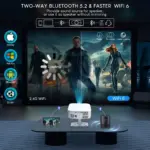 Transform any room into a home theater with this high-performance projector. Whether you’re watching movies, playing games, or enjoying a Netflix marathon, this projector offers stunning image quality and impressive features. Equipped with cutting-edge technology like WiFi6, Bluetooth 5.2, and the ability to project in 4K resolution, it’s perfect for entertainment lovers who demand the best in clarity, convenience, and versatility.
