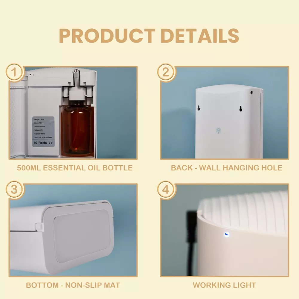 This high-capacity, 500ML essential oil diffuser is designed to deliver a soothing fragrance experience over large areas up to 1200m³. Whether you prefer a subtle whisper of lavender or a vibrant burst of citrus, this device ensures your space is always enveloped in your favorite scents.