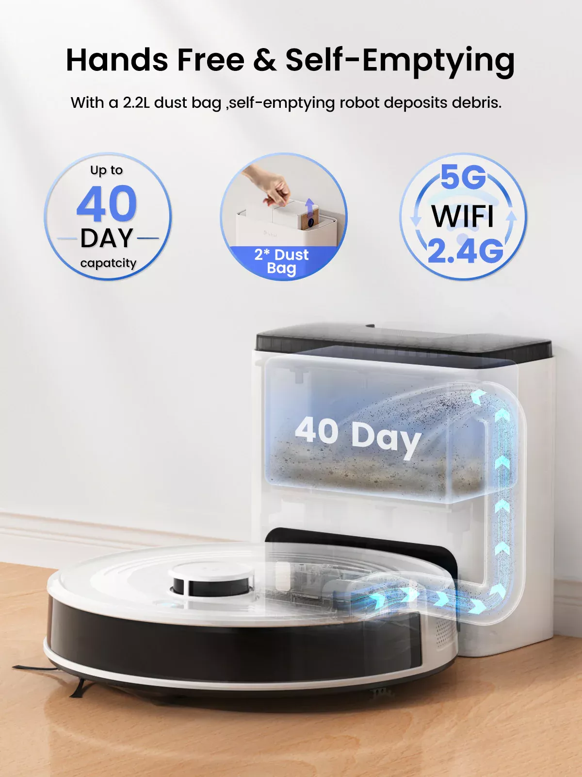 With an impressive 6000Pa suction power, this robot picks up everything from fine dust to stubborn pet hair with ease. It intelligently adjusts suction levels on carpets, ensuring deep cleaning without damage. Plus, the automatic emptying and washing station means you’ll spend less time maintaining and more time enjoying your clean home.