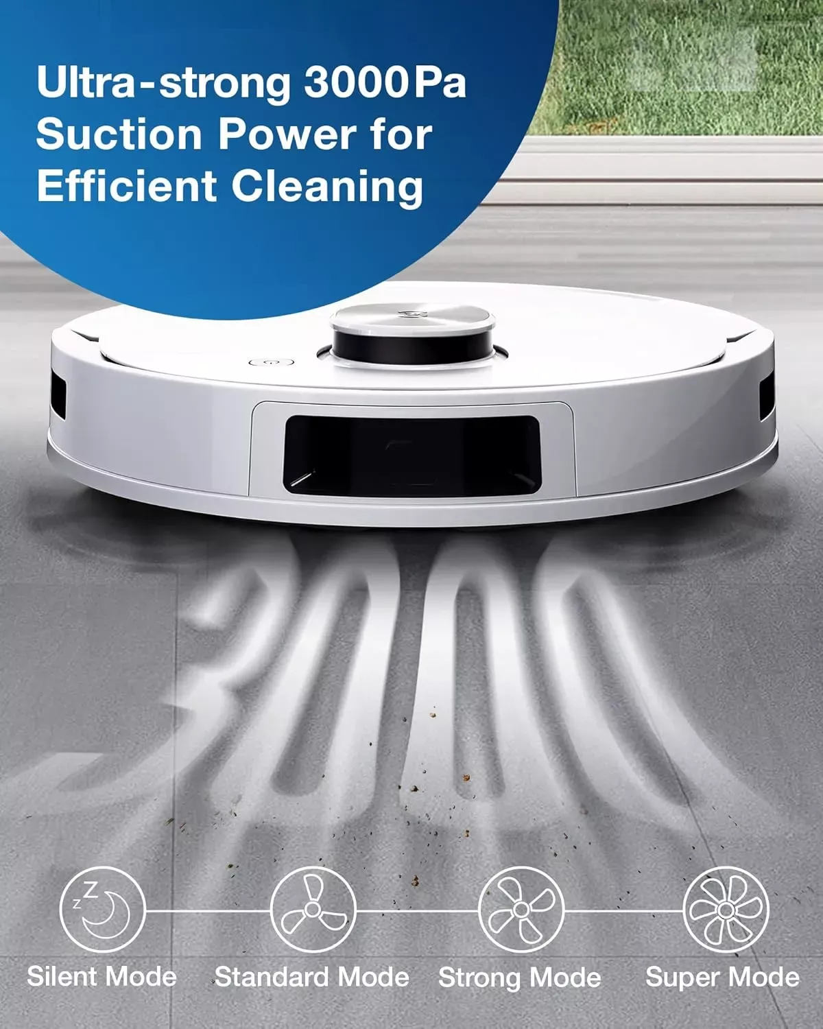 - Powerful 3000Pa Suction: Lifts dirt, debris, and pet hair effortlessly from any surface.