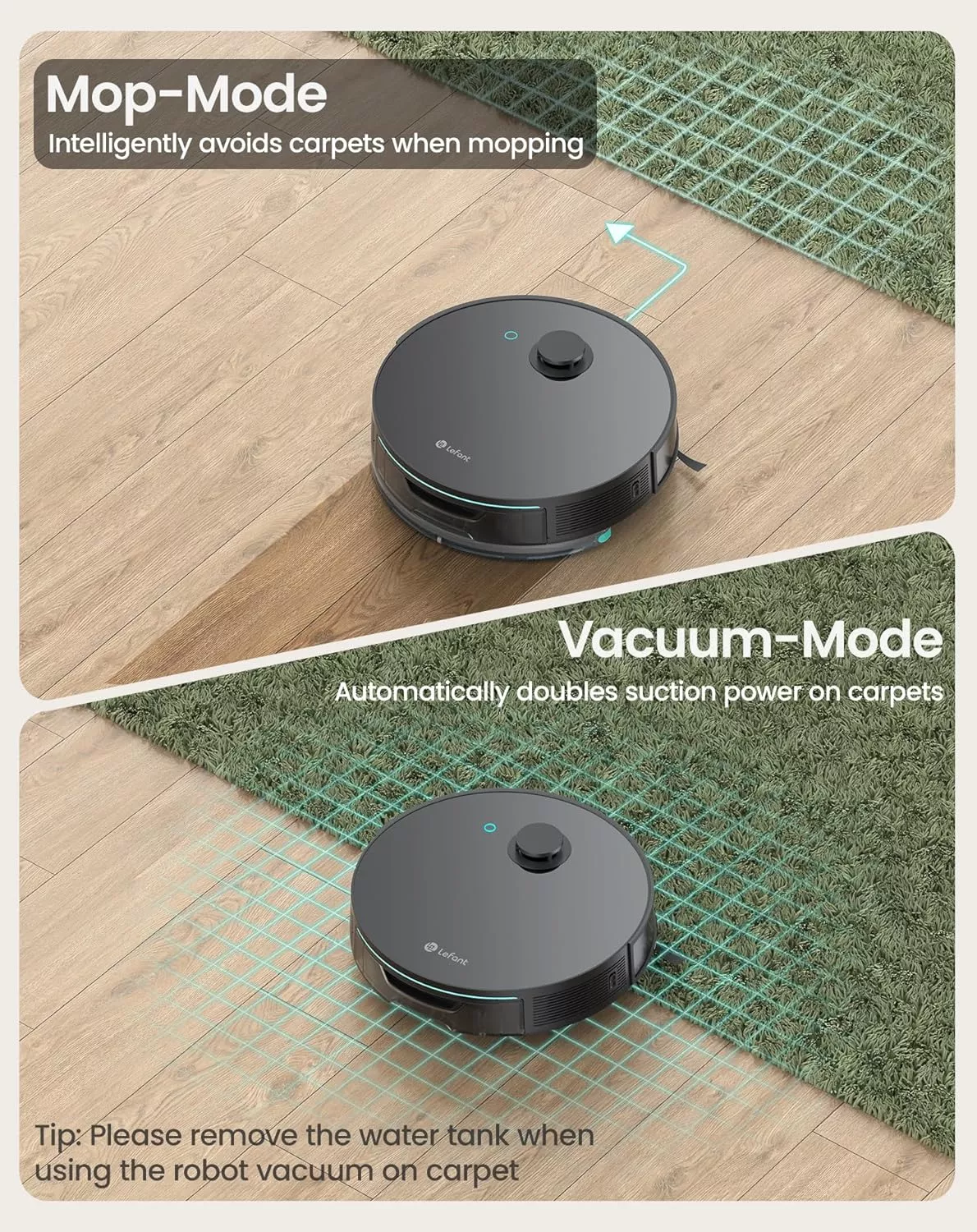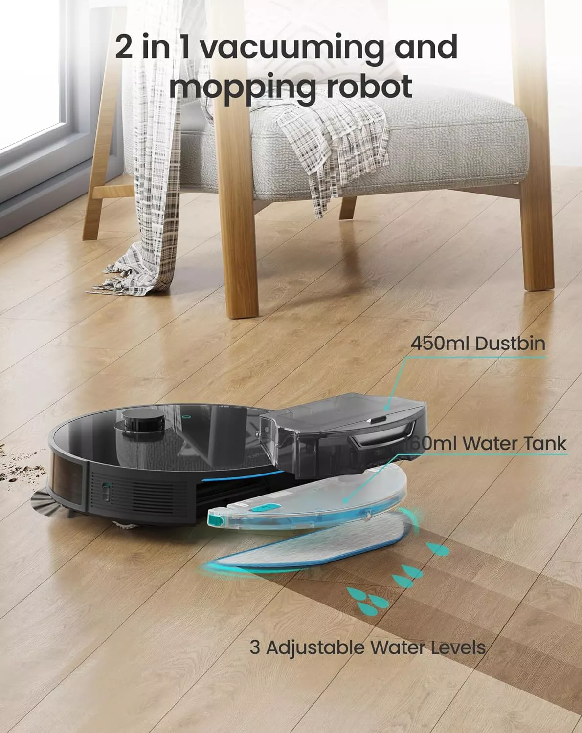 - dToF Laser Navigation: Ensures accurate, planned cleaning routes for full coverage.