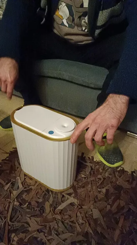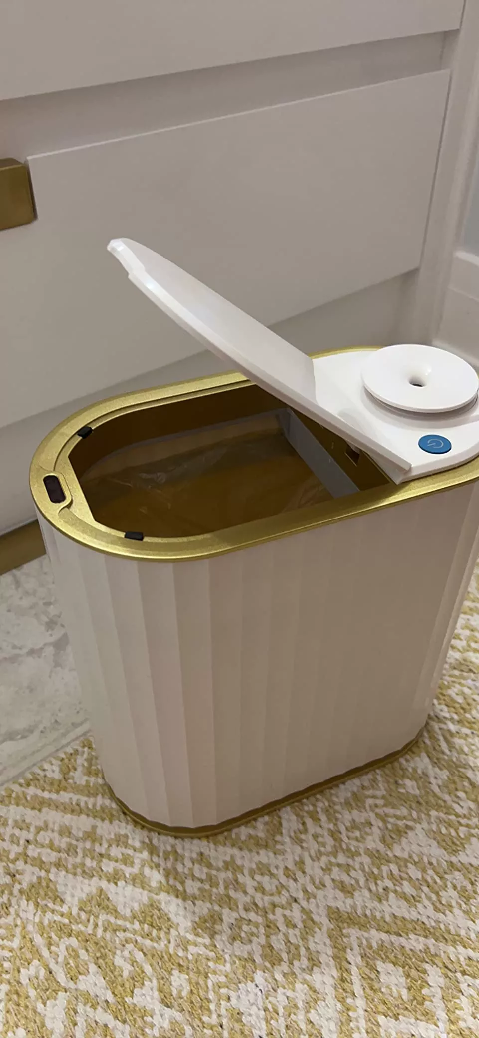 I chose this trash can for its color (white with gold) to match my living room, as I don’t like colored trash cans against a white wall. The wave electric motion feature works well for me.