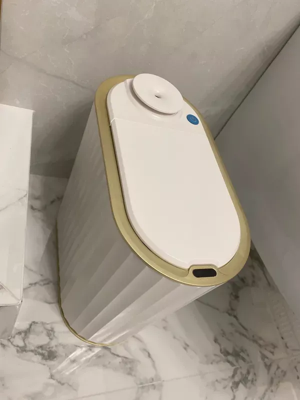 I’m happy with this product; it works great. Its small design is ideal for a toilet room. The deodorizing feature and motion detection are excellent. It came with a gray round topper, which I assumed was to hold the gold bag in place, though I’m not sure how to use it. Regardless, the can works well, so maybe that piece was just for shipping. Either way, I really like it.