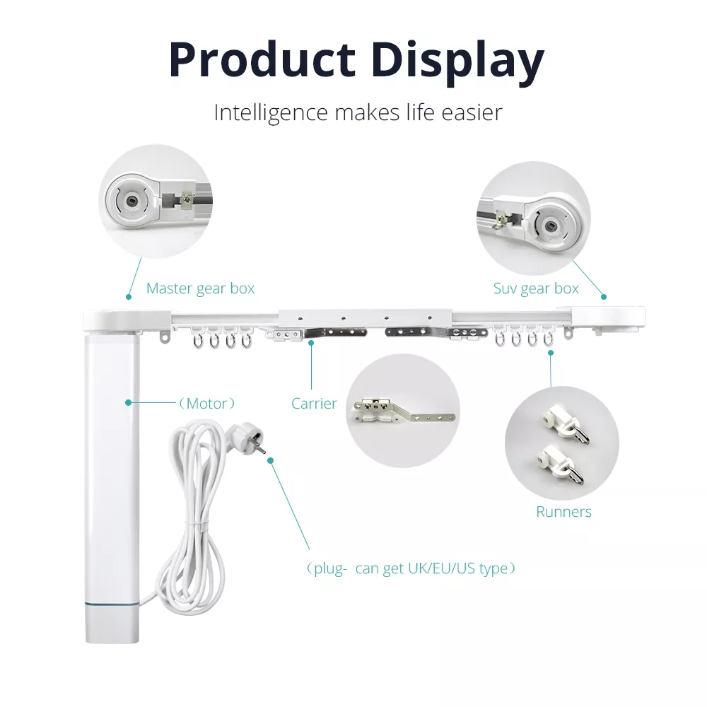 Our Smart WiFi Motorized Curtain Track is designed to bring convenience and sophistication to your home. Here are some of its key features: