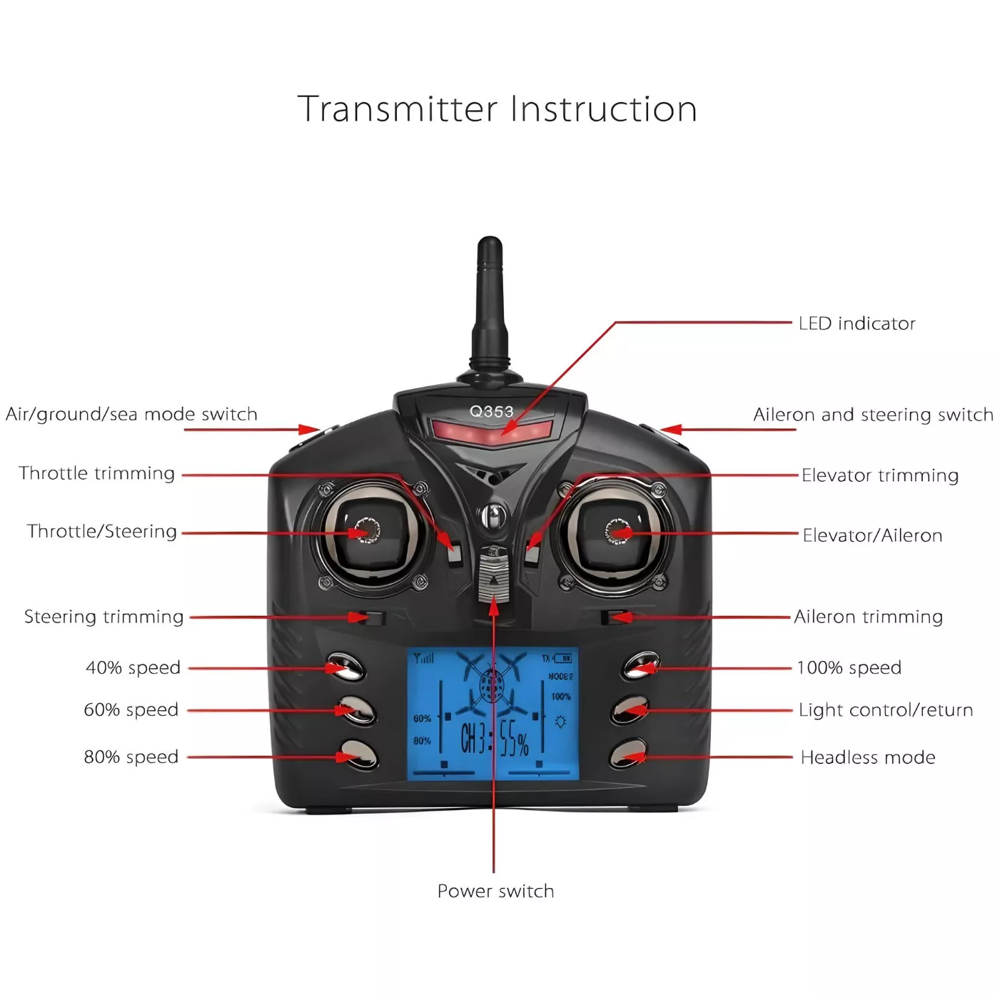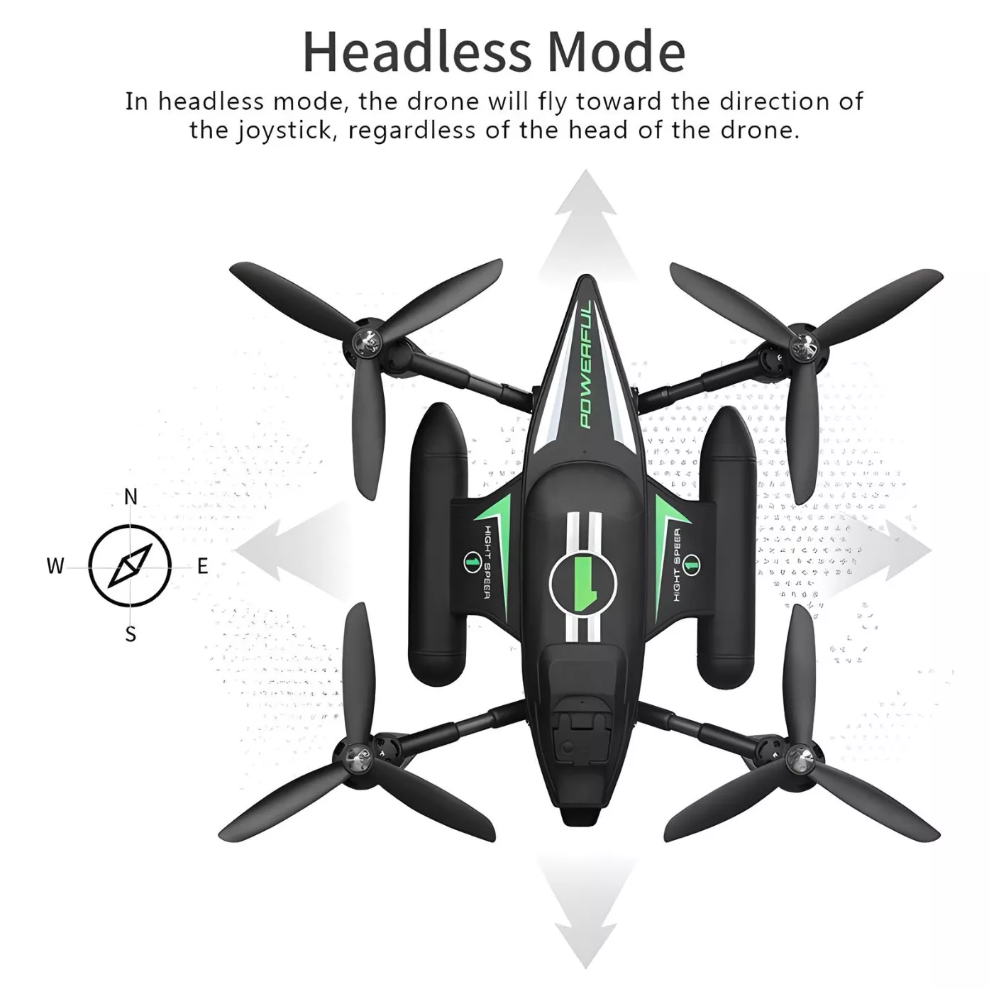 - Headless Mode – Simplifies steering by eliminating the need to adjust aircraft position before flight.