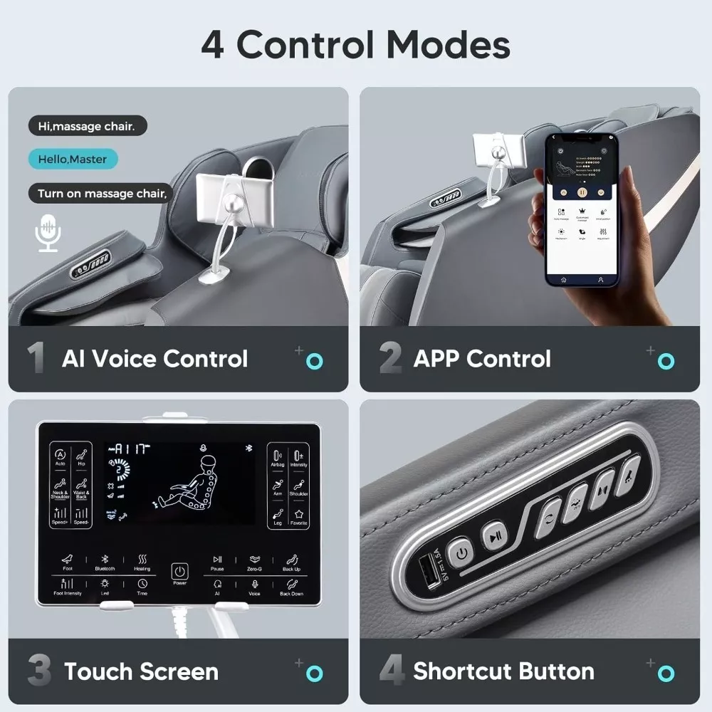 Take command effortlessly using AI voice control, the 7-inch touchscreen, or the dedicated mobile app. Select from six automatic programs—like Thai Stretch, Yoga Recovery, or Neck & Shoulder Relief—to suit your mood and lifestyle. Bluetooth speakers let you unwind with your favorite playlist while the built-in USB port keeps your devices charged, making it ideal for both home and office relaxation sessions.