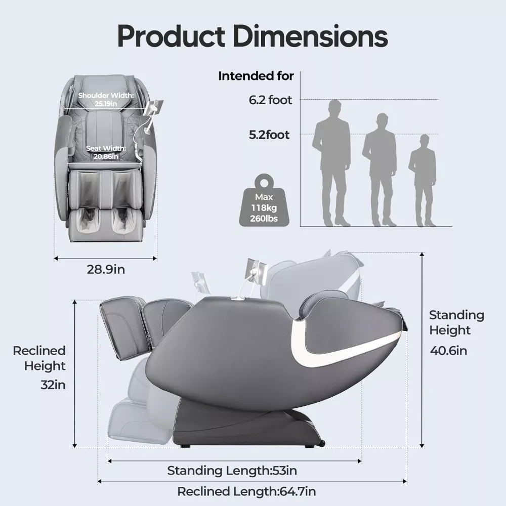 Transform your home into a private wellness retreat with the Full Body Zero Gravity Massage Chair. Designed to deliver a professional-level massage experience, this recliner combines modern technology with luxurious comfort. Whether you’re unwinding after a long day, recovering from a workout, or simply seeking daily stress relief, this chair adapts to your every need—providing deep relaxation, improved circulation, and instant rejuvenation.